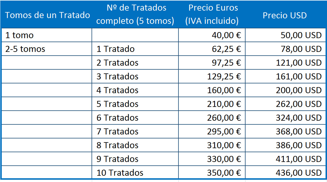 a) Si eres un consumidor final, añadiremos un 4% de IVA a la compra del Tratado impreso y un 21% a la compra del e-book.