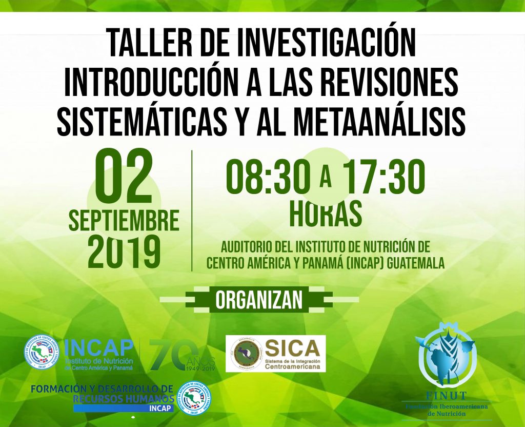 En el marco del convenio de colaboración entre instituciones el Instituto de Nutrición de Centroamérica y Panamá (INCAP) y la Fundación Iberoamericana de Nutrición (FINUT) hemos organizado un taller presencial de investigación "Introducción a las revisiones sistemáticas y al metanálisis".