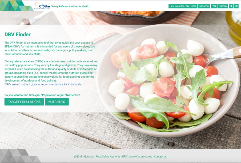La European Food Safety Authority-EFSA ha lanzado una herramienta interactiva que permite a los profesionales relacionados con la nutrición, la dietética y otros profesionales de la salud, realizar cálculos de forma rápida y sencilla utilizando los valores dietéticos de referencia (VDR) de la EFSA.