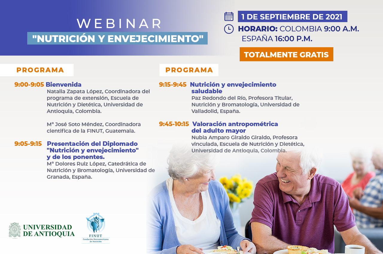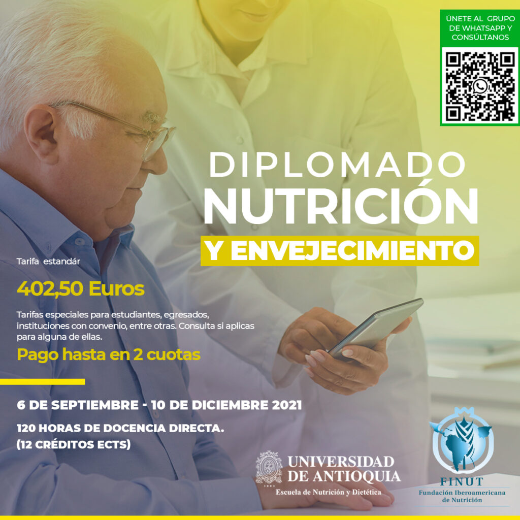 LOS ASISTENTES A ESTE EVENTO DISFRUTARÁN DE UN DESCUENTO DEL 10% EN LA INSCRIPCIÓN DEL DIPLOMADO «NUTRICIÓN Y ENVEJECIMIENTO» ORGANIZADO POR LA UdeA y la FINUT
